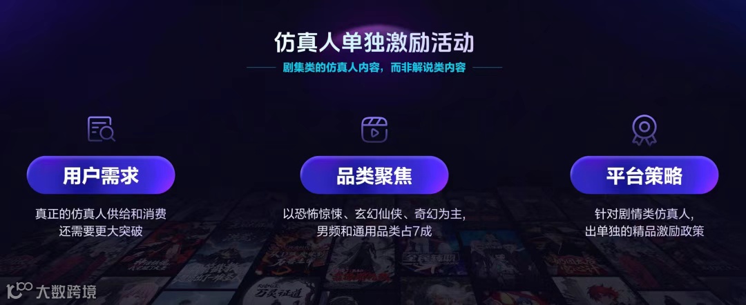 值得关注的是,激励对象是剧情类的仿真人内容,明确排除了解说类形式;激励题材以恐怖惊悚、玄幻仙侠和奇幻三大类型为主,男频和通用品类的内容被设定为扶持重点,计划占据约70%的份额。