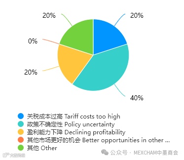 Among the reasons for planning to reduce the scale of operations, policy uncertainty accounted for the highest proportion, reaching 40%, which is significantly higher than factors such as excessively high tariff costs (20%), declining profitability (20%), and others (20%).