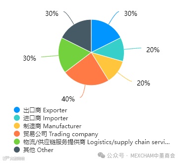中国墨西哥商会(MEXCHAM)于 2026 年一月开展了一项线上公开中墨商业前景调查,旨在全面掌握中墨两国企业对当前双边贸易投资环境、合作潜力、风险挑战及未来发展预期的看法,为商会制定针对性服务方案、助力两国企业精准对接资源提供数据支撑,同时为中墨政府部门优化经贸合作政策提供参考依据。本次调查采用线上问卷形式,面向在华墨西哥企业、在墨中国企业及有意向开拓对方市场的双边企业开放,调查周期为 2026 年 1 月。