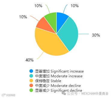 Overall, the highest percentage (40%) chose "remain stable." "Moderate increase" accounted for 30%, and "significant increase" for 10%, totaling 40%, which is on par with the stable state. "Moderate decrease" and "significant decrease" each accounted for 10%, indicating a relatively low proportion of negative changes.