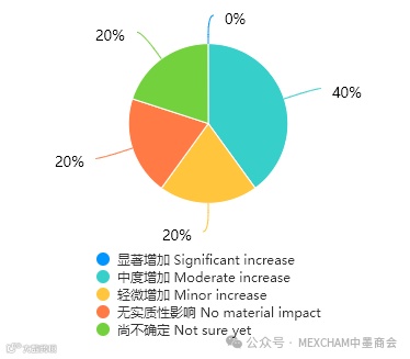 在所有调查对象中,认为成本会中度增加的占比40%,轻微增加的占20%,两者合计达到60%;而认为无实质性影响和尚不确定的各占20%,没有人认为成本会显著增加。
