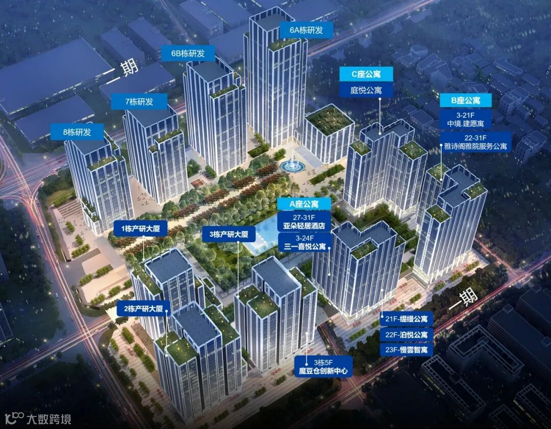 三一云都产业园总建筑面积约68万平米,集研发、办公、商业、人才公寓为一体,将打造成以智能制造产业为核心的世界籍智造创新生态圈。
