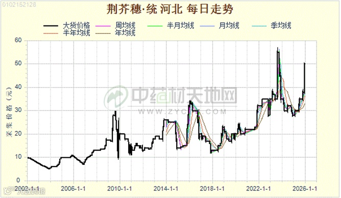 上图为:荆芥穗历史行情走势