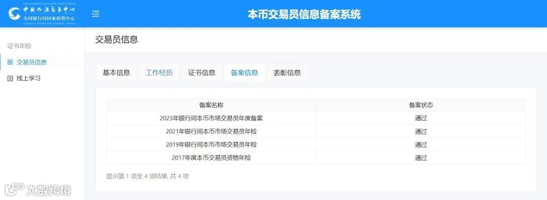 备案完成后,系统将发送短信通知结果。也可通过备案系统“交易员信息”下的“备案信息”或“证书信息”页面,查看个人信息是否更新成功。