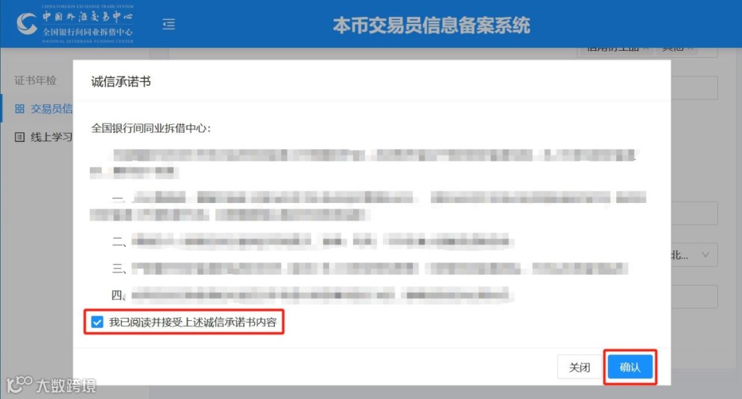 阅读并确认《诚信承诺书》内容,点击“确认”完成承诺。