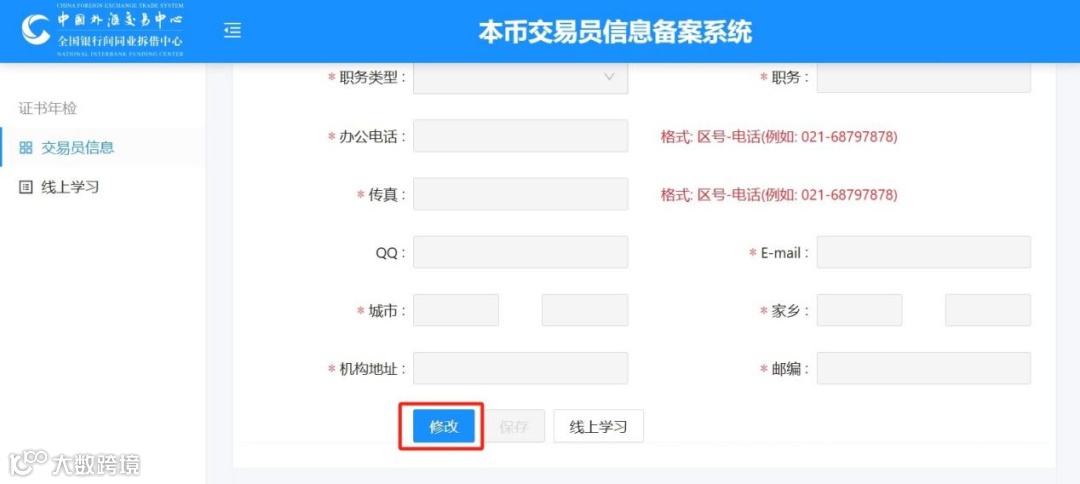 登录本币交易员信息备案系统:https://training.chinamoney.com.cn/yearcheck-pc/#/common/login,输入账号信息完成备案。