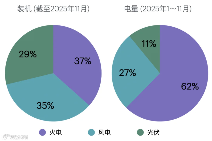 截至25年11月,统调装机153GW,1-11月发电量2851亿度,主要电源占比如下