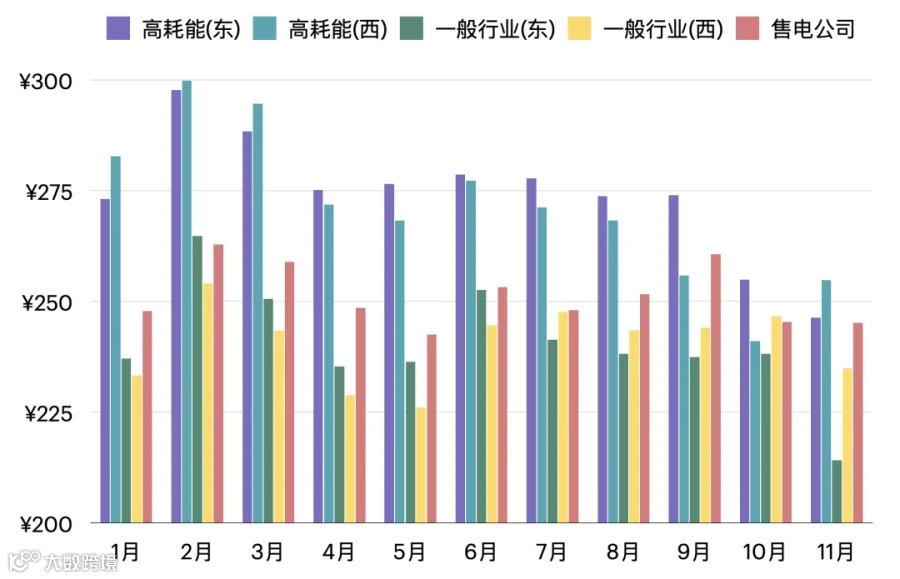 我们进一步统计2025年1-11月不同主体逐月结算价格如下