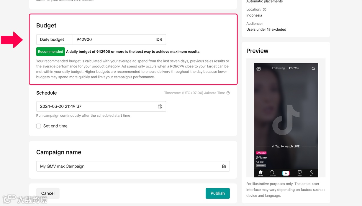 根据计划设置合理的 日预算,平台会提供参考建议。同时调整 “排期”,确保广告活动与你的直播时间完美匹配。