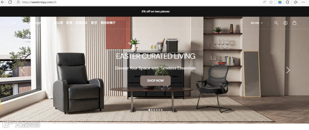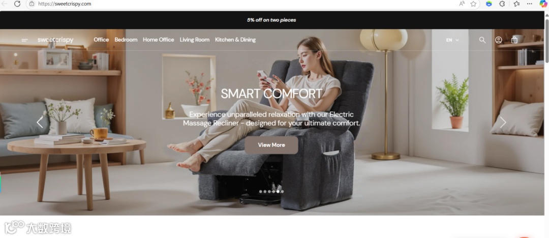 销售渠道方面,Sweet crispy主要采用线上模式。在海外搭建独立站同时,又入驻了亚马逊、沃尔玛、Wayfair等电商平台,全面拓展品牌影响力。