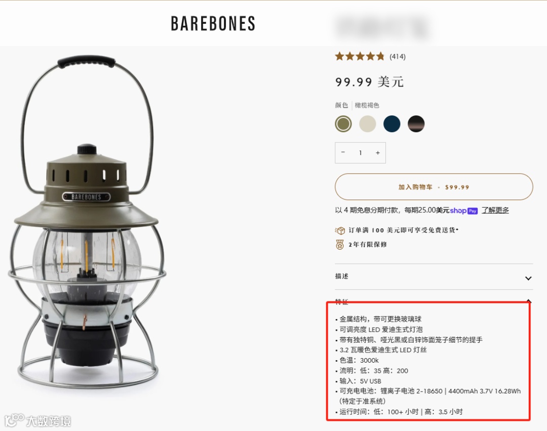 图源:Barebones品牌标志性产品如铁路灯和吊挂式营灯Beacon,均采用可充电的18650锂电池,支持USB接口充电,续航达100小时(低亮度模式),并配备可替换灯罩,减少玻璃破损导致的整体更换需求。