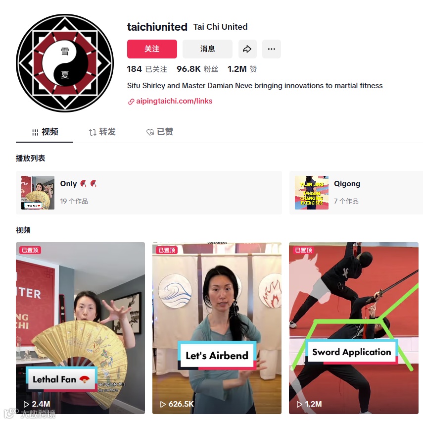 TikTok达人@taichiunited的账号尤其擅长太极扇技艺展示,结合中国太极拳的展示方式,深受海外网友喜爱,成为太极扇领域的"带货达人",多条视频播放量突破百万,其独立站更是靠太极扇年营收超百万美元。