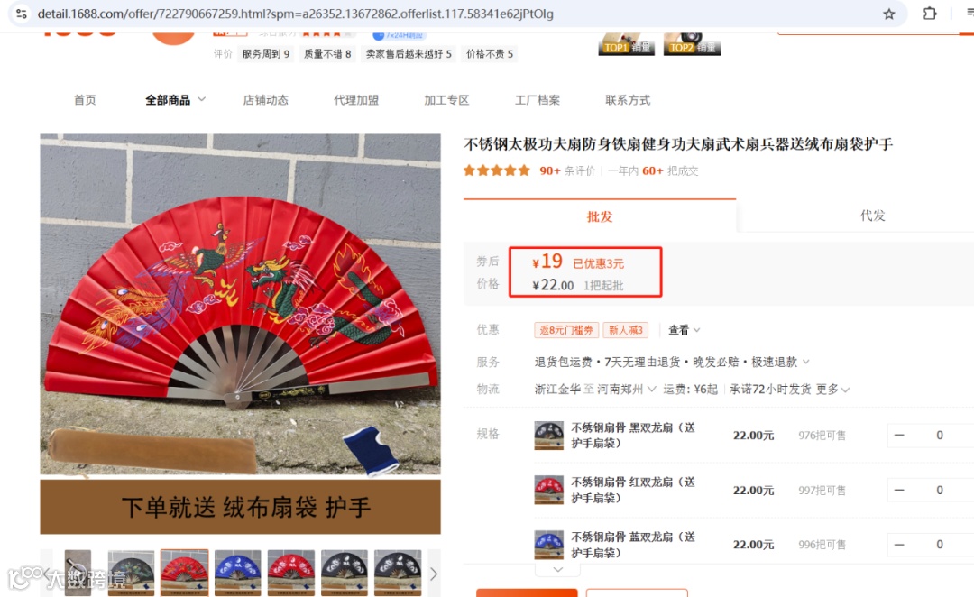 数据显示,同款太极扇在1688上仅需19元,而海外却高达500元,这种巨大的价差让太极扇成为潜力爆品。