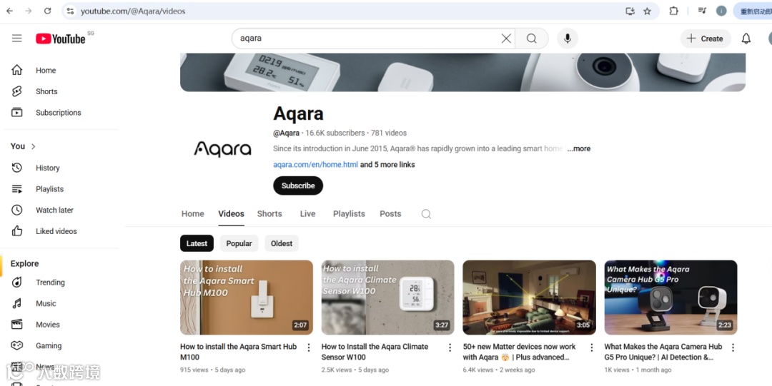 图源:youtube虽然Aqara各社媒平台粉丝数量不算多,但通过持续输出功能展示、用户体验分享和开箱测评等内容,已初步建立起自己的私域流量池。