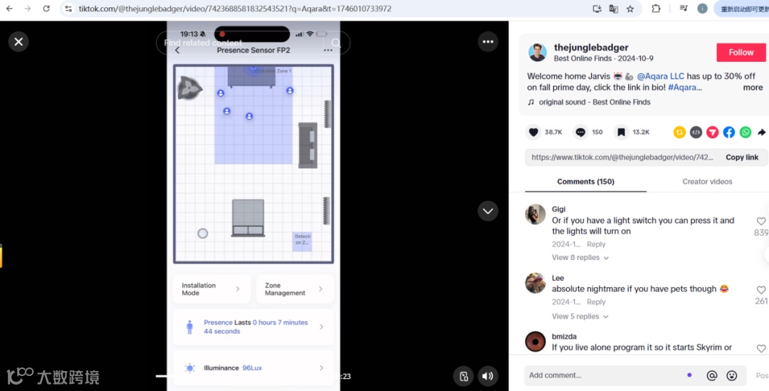 通过实际使用演示,直观展示了智能音响的强大功能,如开门后灯光自动点亮、语音控制多种家用电子设备等智能互联场景,体现产品的实用性,收获海外用户大量点赞与评论。