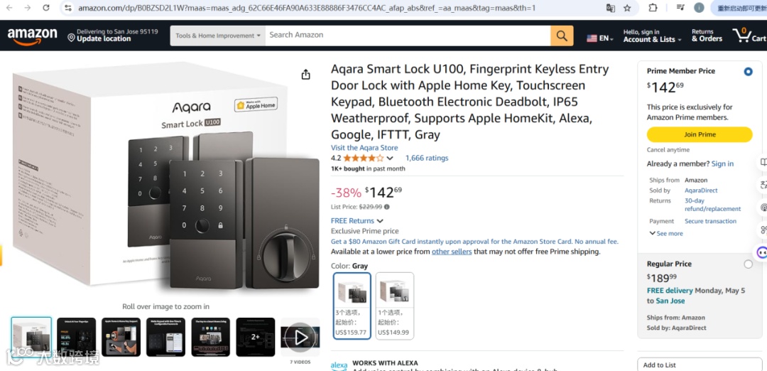 另外,高性价比也是Aqara的一大优势。Aqara 推出的 U100 智能锁在 2023 年 CES 展会上被评为“最实惠的 Apple Home Key 锁”,打破智能锁动辄几百美元的价格门槛。