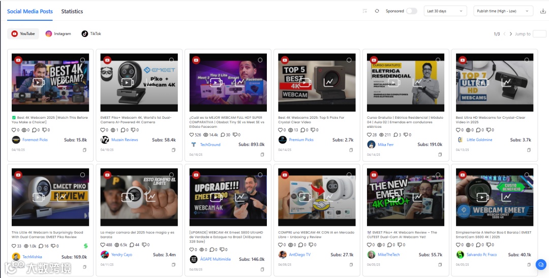 通过观察和SocialBook的【竞品监听】功能显示,eMeet合作的红人几乎都集中在尾部量级,这类红人的合作成本较低,很多都接受纯分佣、免费置换的合作方式。