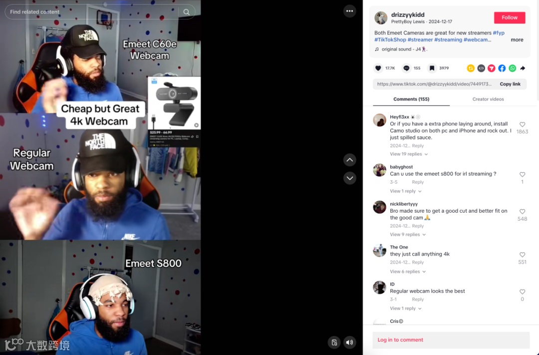 eMeet认为Lewis的身份让其对摄像头有很高的要求,此外账号内的直播日常生活和评论也显示,他的粉丝有不少也希望自己开直播,因此和Lewis合作还是比较契合的。