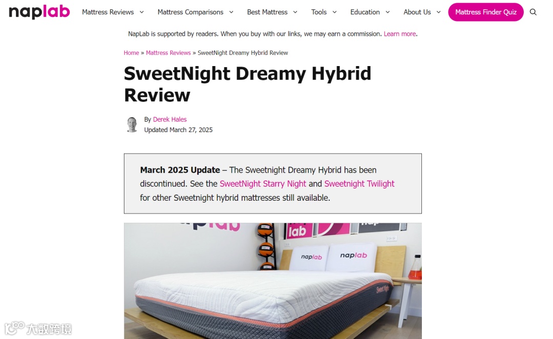 2024年,该网站发布SweetNight的记忆海绵床垫测试;2025年3月Naplab再次上线相关测试稿件,由极其详细的数据和睡眠体验支撑,为潜在消费者提供了十分值得参考的购买意见。