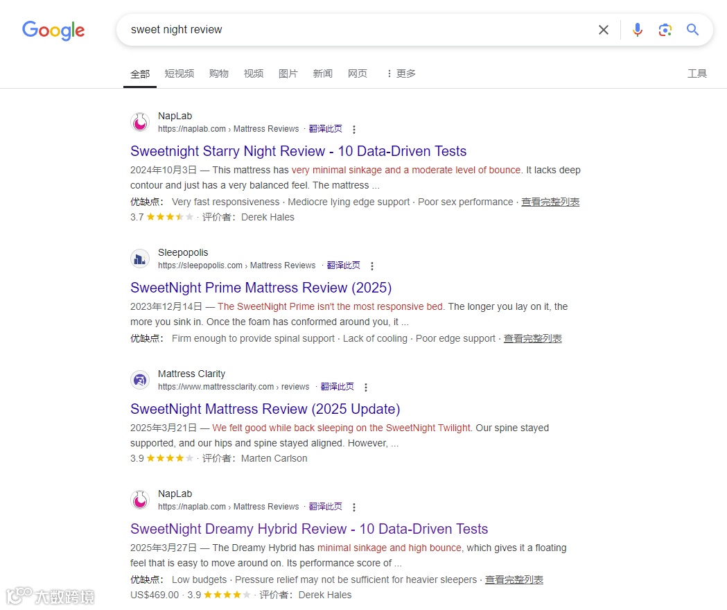 通过与多个行业知名的床垫博客合作,SweetNight优质的床垫产品深入人心,同时其谷歌收录列表丰富且品牌形象正面,外媒稿件作用显著。