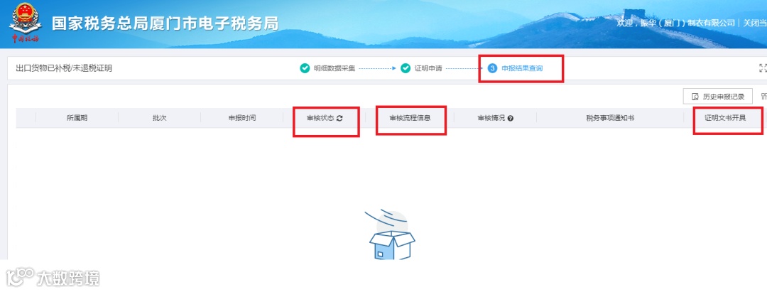 可登录系统查看【审核状态】及【税务事项通知书】获取结果,证明文书可在【证明文书开具】下载带公章的报表。