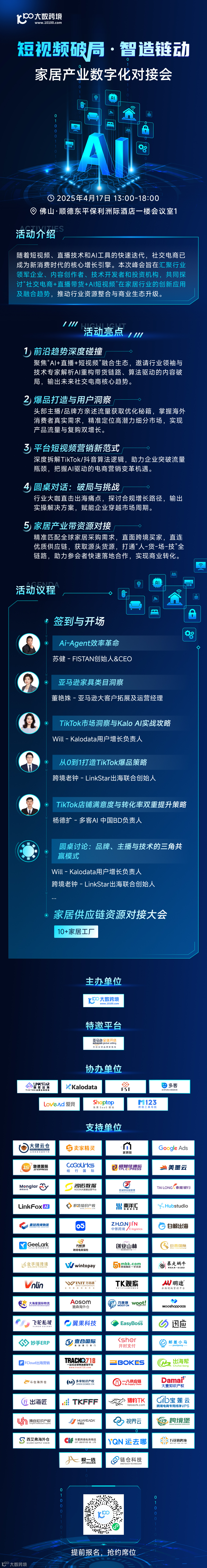 活动介绍:随着短视频、直播技术和AI工具的快速迭代,社交电商已成为新消费时代的核心增长引擎。本次峰会旨在汇聚行业领军企业、内容创作者、技术开发者和投资机构,共同探讨“社交电商+直播带货+AI短视频”在家居行业的创新应用及融合趋势,推动行业资源整合与商业生态升级。