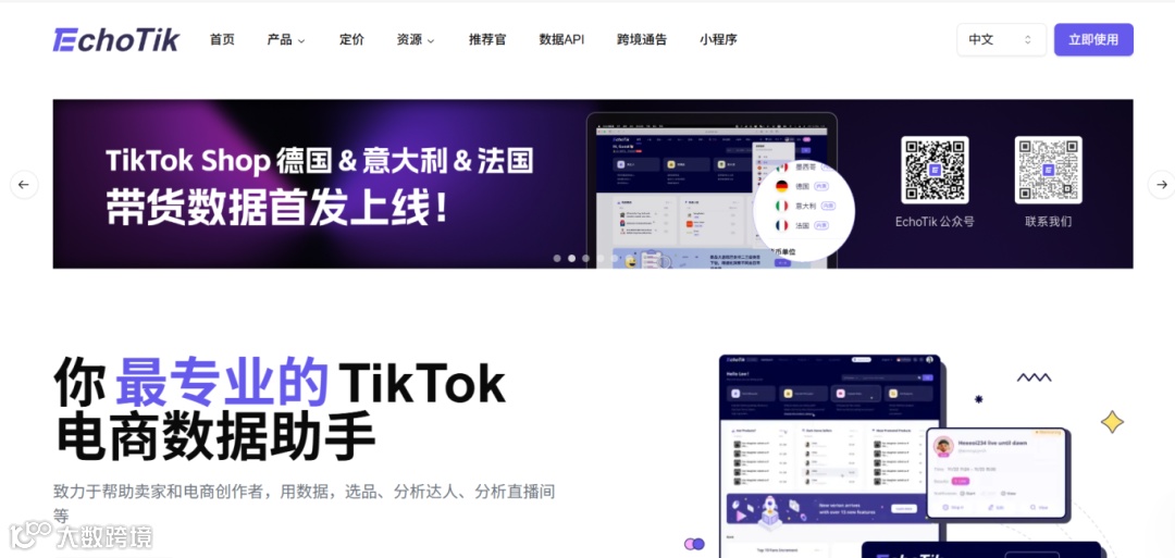 EchoTik——专注于TikTok电商数据的Saas服务,里面有独家热搜词,帮助你做热度分析再选品,还有TikTok Shop站点的市场分析报告,洞察宏观市场。