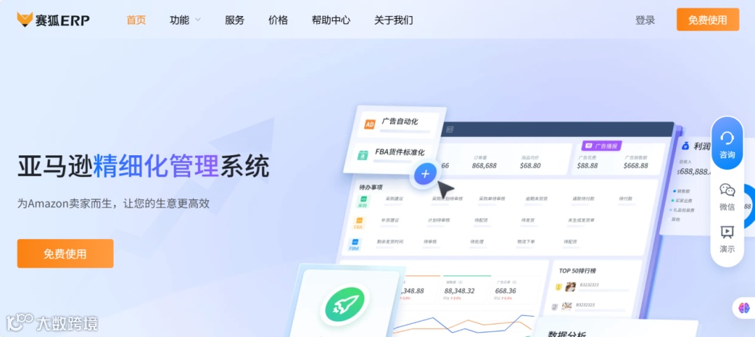 赛狐ERP——专为亚马逊卖家打造的管理系统产品,能够使用可视化数据看板来观察销售、广告、 库存等,还能支持售后运营。