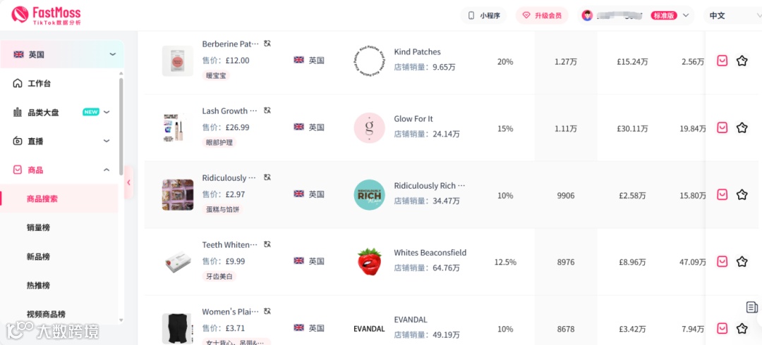FastMoss——提供TikTok带货直播数据、爆款商品数据、热销店铺数据以及TT达人画像与建联、广告数据,可以帮助更好地分析整体的销售数据。