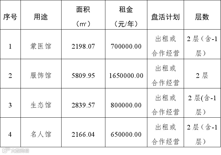 对外租赁以第三方机构评估的年租金市场价值为每年租金收取的参考依据;如双方合作,意向合作方可结合自身实际需要装修升级为星级酒店或在不破坏主体结构的基础上进行改造用于医疗康养、养老服务,收益按照“固定收益+超额分成”方式进行分配。