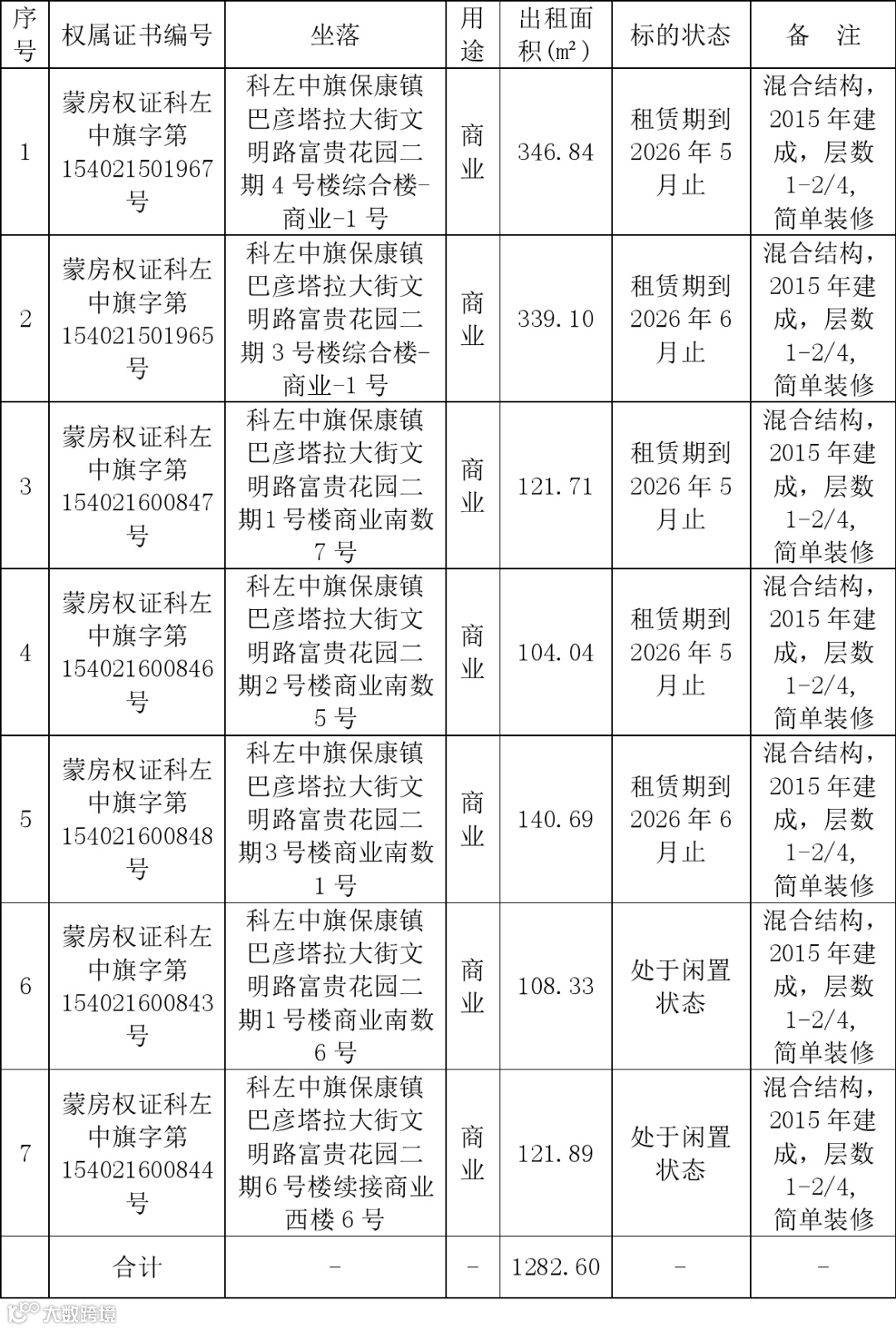 项目二、通辽市科尔沁区通辽宴房产整体出租