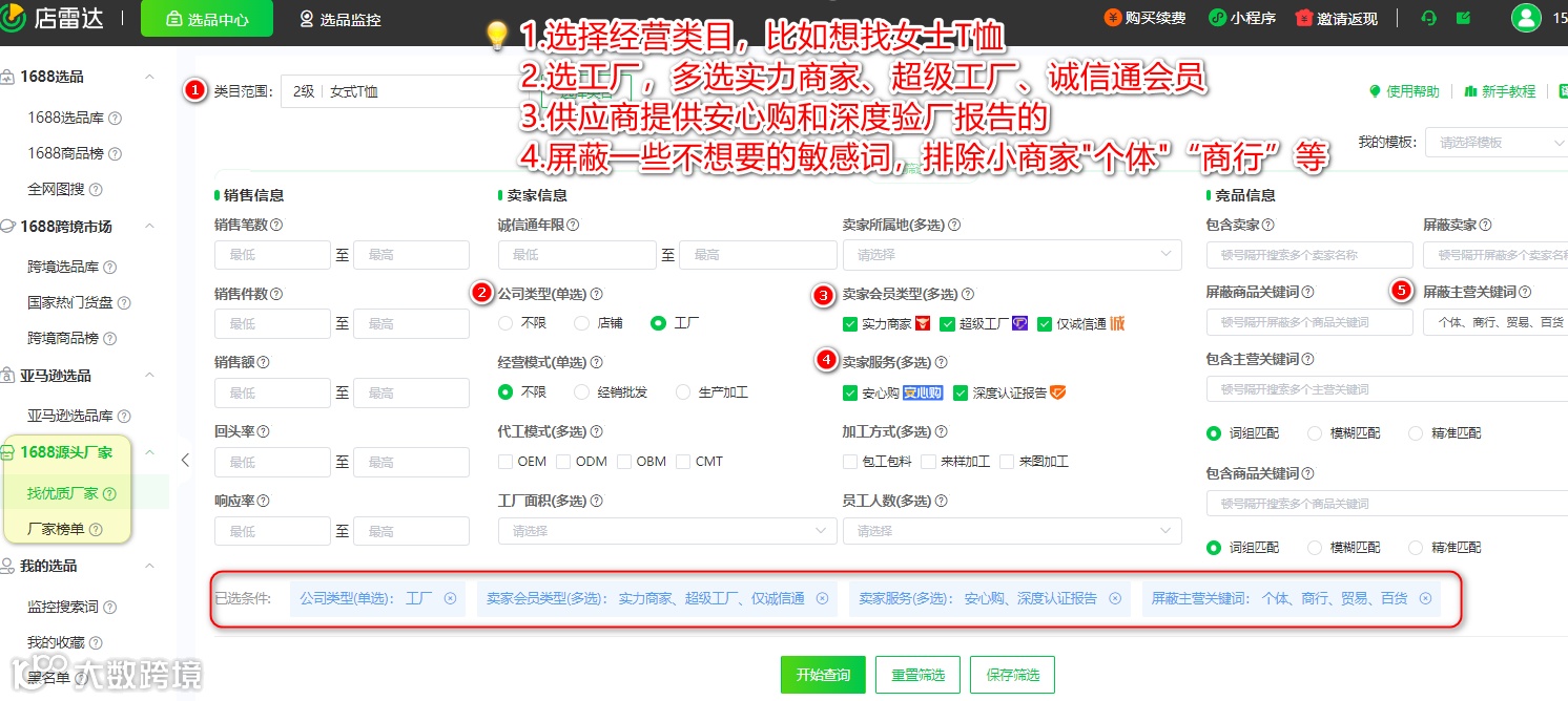 2.选工厂,多选实力商家、超级工厂、诚信通会员