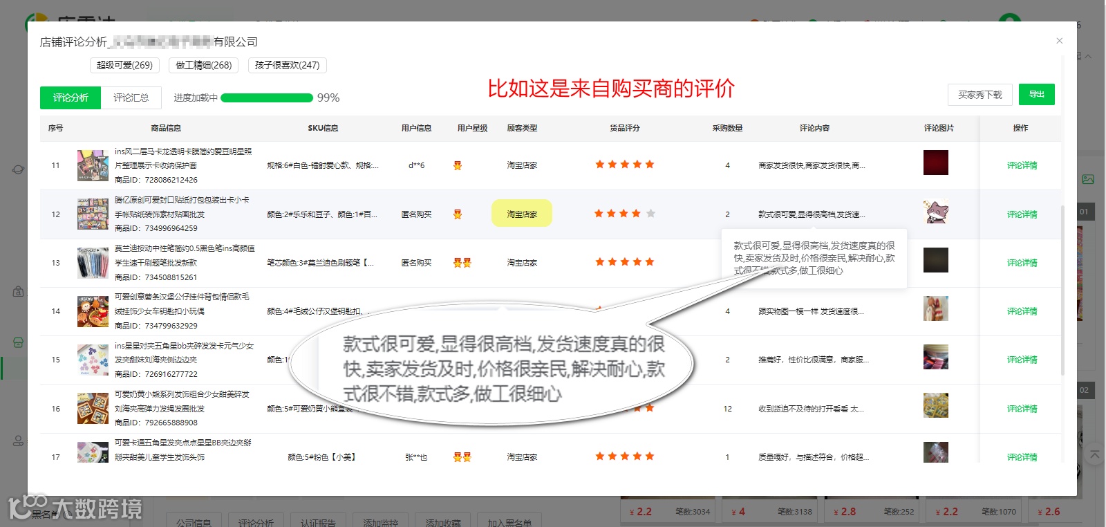 再结合购买合作过的购买商评价,比如厂家顾客类型、单个商品评论、购买商评价关键词等多维度来判断厂家的态度和品质。