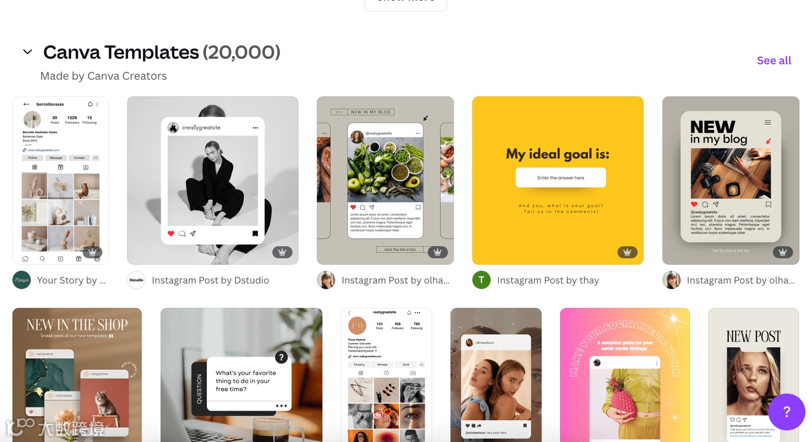 Canva是创作者、小企业和营销人员的首选平台——尤其是当你没有设计背景时。它提供了成千上万的免费Instagram模板,适用于各种格式(短视频、轮播、故事等),并且都已完美调整尺寸,随时可以用于Instagram发布。