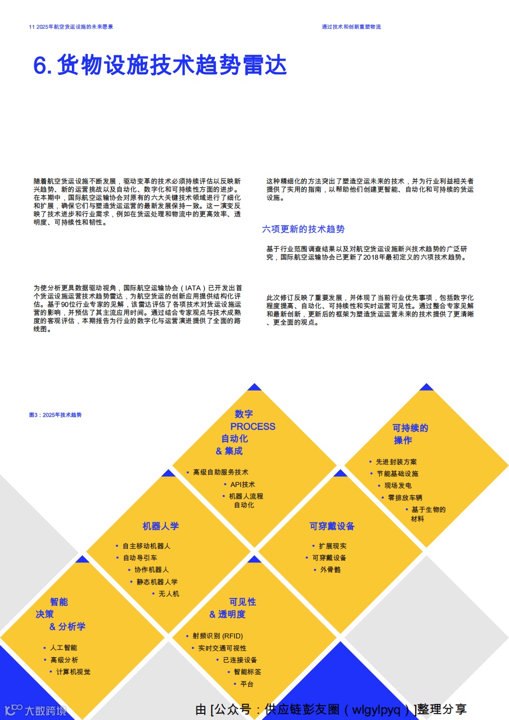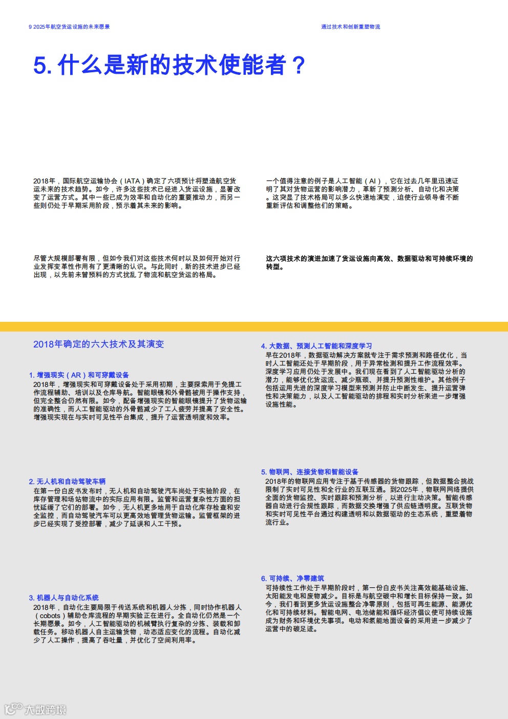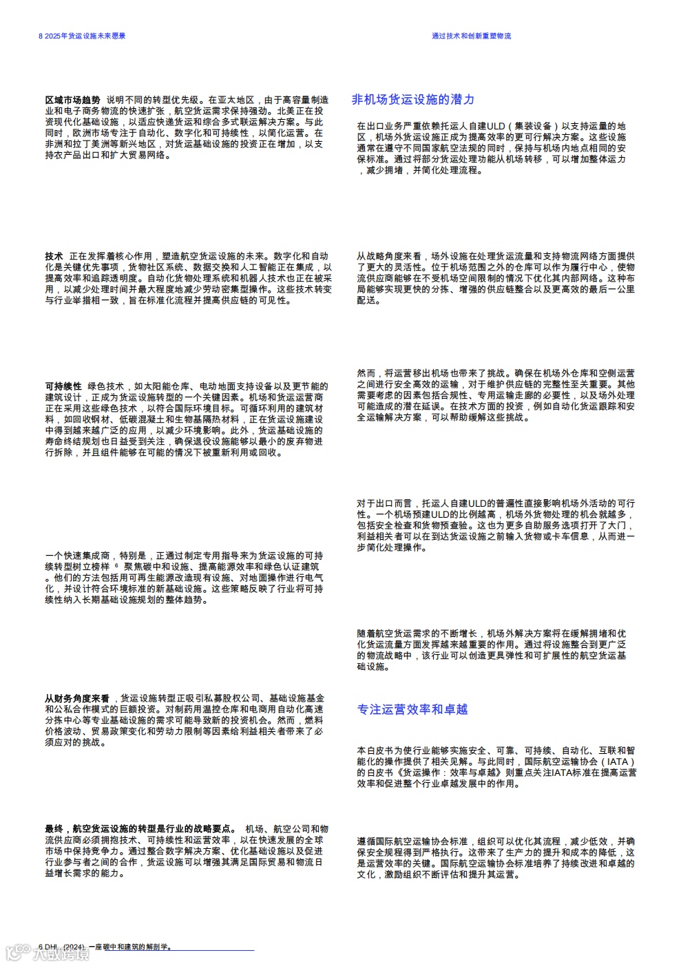 物流指闻航空货运业正面临深刻变革,驱动因素包括贸易量增长、客户需求变化、监管压力以及对运营韧性与可持续性的更高要求。传统货运设施受限于老旧基础设施和人工操作流程,已难以满足当前对效率、可扩展性和合规性的需求。《2025年航空货运设施未来愿景》白皮书深入分析了这些挑战,系统梳理了推动下一代航空货运发展的关键技术,并提出了切实可行的实施路径。