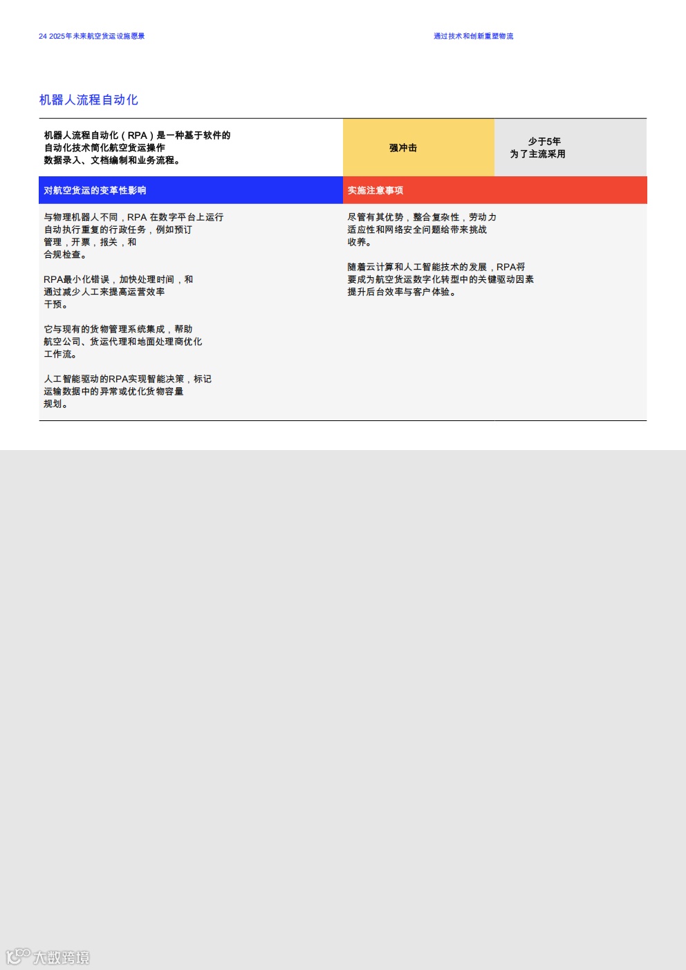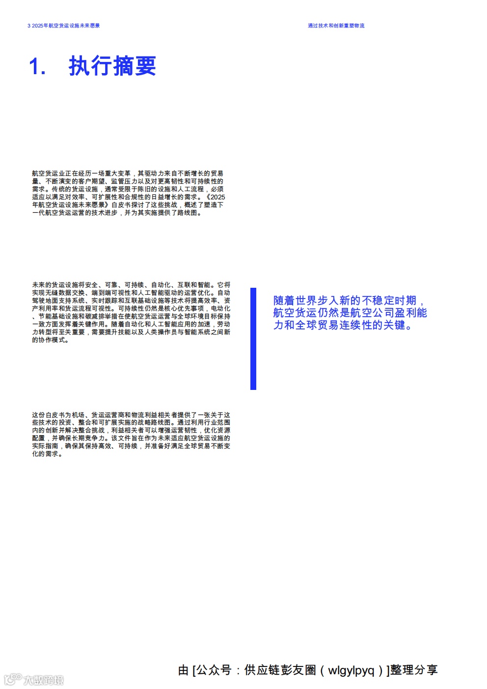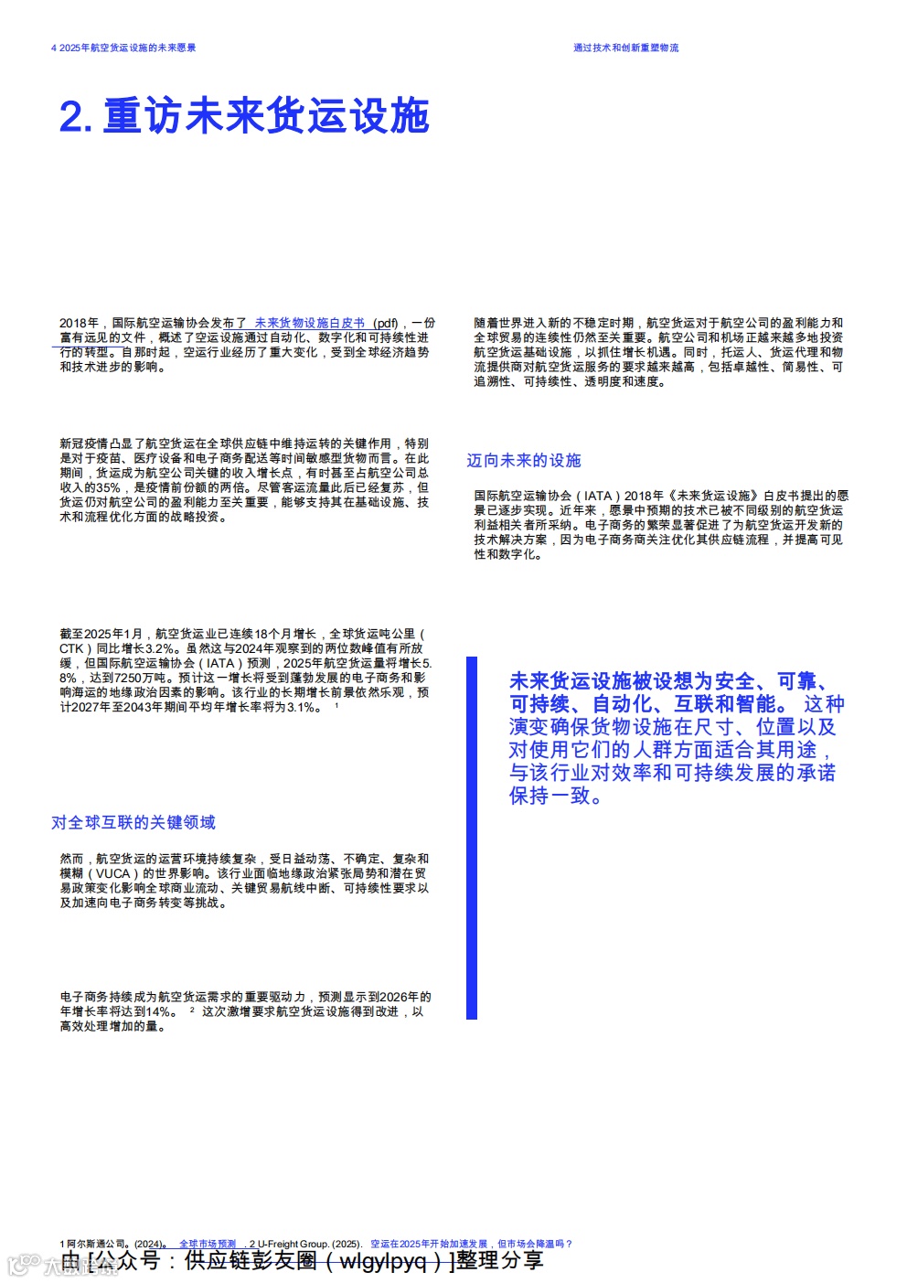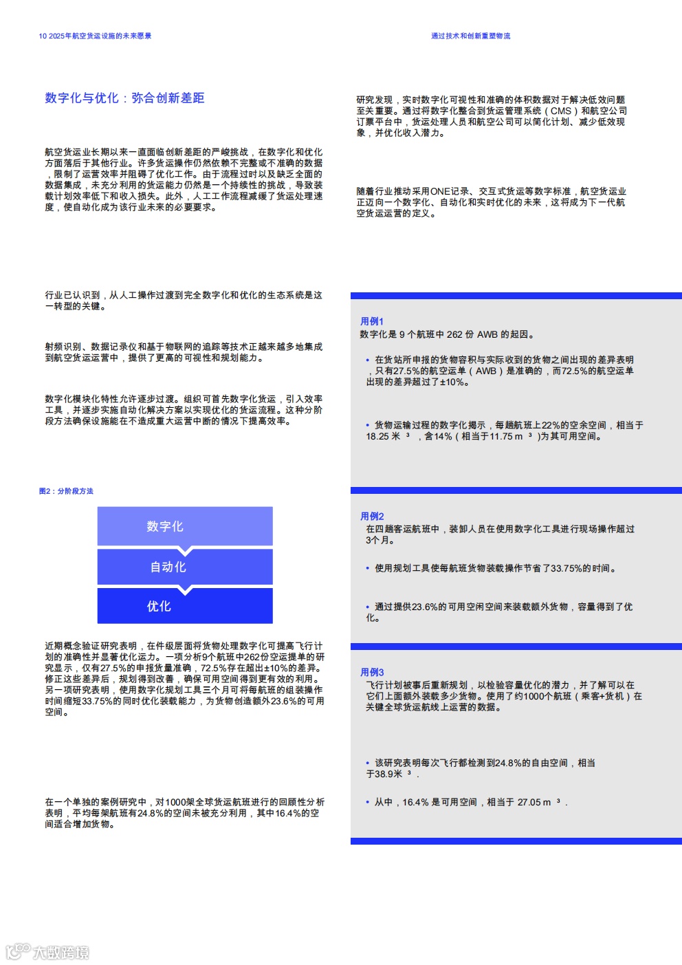 物流指闻航空货运业正面临深刻变革,驱动因素包括贸易量增长、客户需求变化、监管压力以及对运营韧性与可持续性的更高要求。传统货运设施受限于老旧基础设施和人工操作流程,已难以满足当前对效率、可扩展性和合规性的需求。《2025年航空货运设施未来愿景》白皮书深入分析了这些挑战,系统梳理了推动下一代航空货运发展的关键技术,并提出了切实可行的实施路径。