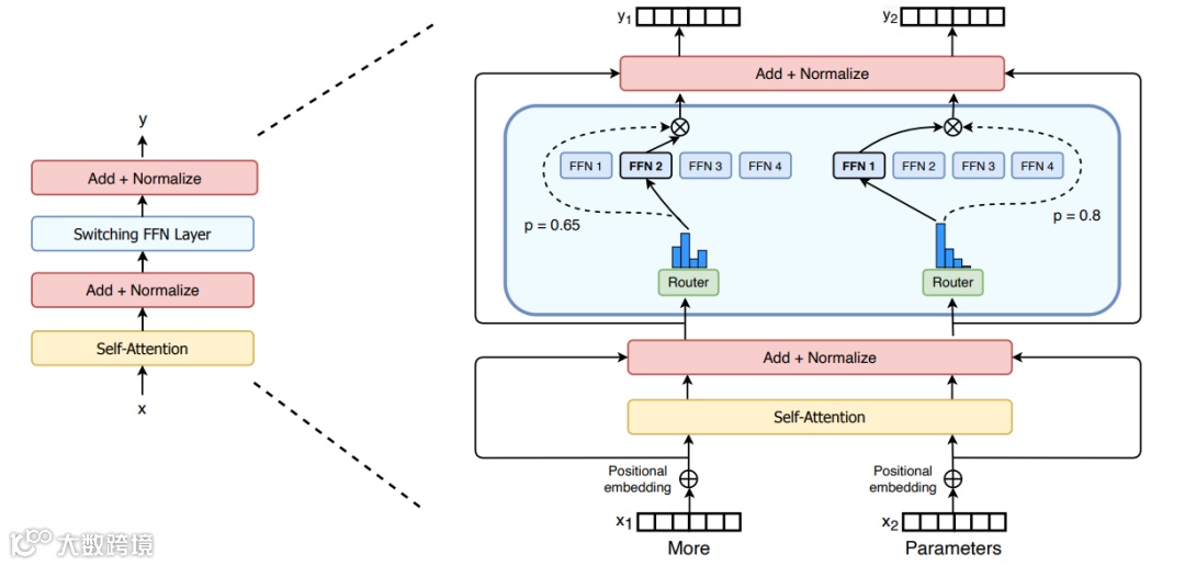 在MoE摸型中,“专家”负责学习并处理不同的信息,而”路由器”则负责根据输入智能地选择最合适的专家进行处理,并将选定专家的输出作为最终输出。