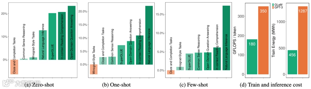 GLaM:同样来自Google的GLaM模型,虽然总参数量高达1.2T,但其推理成本仅为GPT-3 (175B)的三分之一,却在多项零样本(Zero-shot)NLP任务上取得了更优异的成绩。