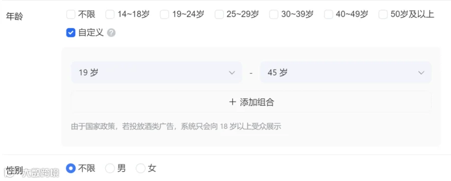 年龄以及性别定位筛选: