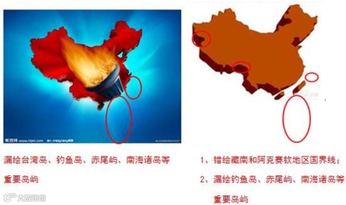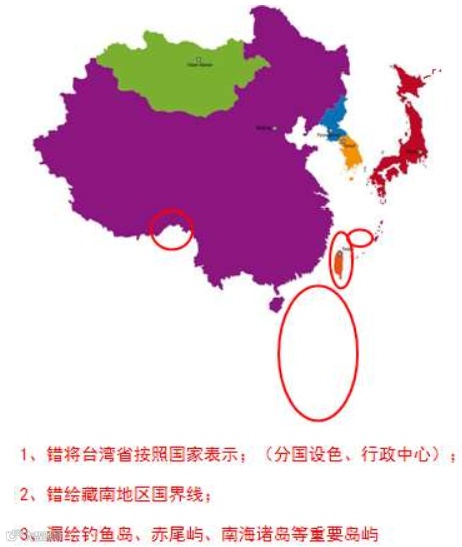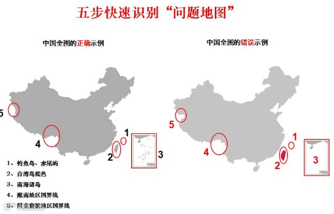 “问题地图”主要指存在危害国家主权统一、领土完整、安全和利益等严重问题的地图。“问题地图”的常见错误有漏绘钓鱼岛、赤尾屿、南海诸岛等重要岛屿;错误表示台湾省;错绘藏南地区和阿克赛钦地区国界线等。