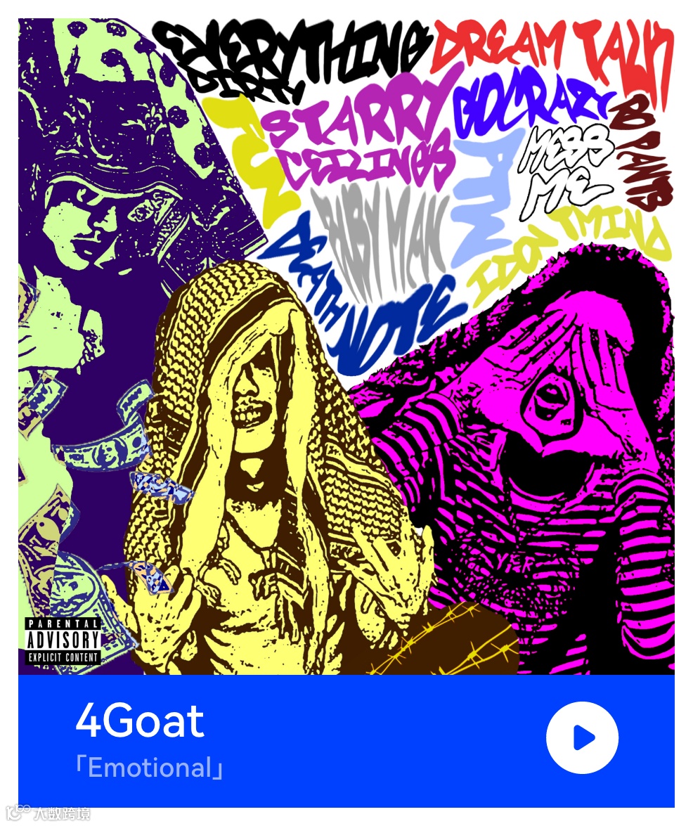 说唱歌手 4Goat 以犀利流畅的说唱节奏著称,善于描绘情感中的起伏与碰撞。他的音乐在保持说唱硬核质感的同时,也兼具细腻的情感表达,通过真实的内心独白和极具张力的编曲,展现出独特的创作实力。