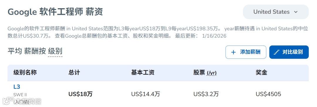 Google(L3):约 18万美元,以优越的福利、良好的工作生活平衡(WLB)和稳定的文化著称,仍是毕业生的梦想之地。