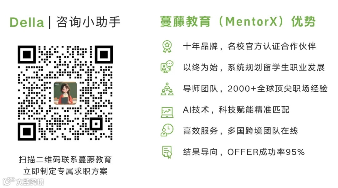 蔓藤教育带你从求职策略、简历优化、名企内推、技能提升到面试辅导,帮你梳理了全方位备战方案,我们全程陪伴,助你将潜力转化为理想Offer!