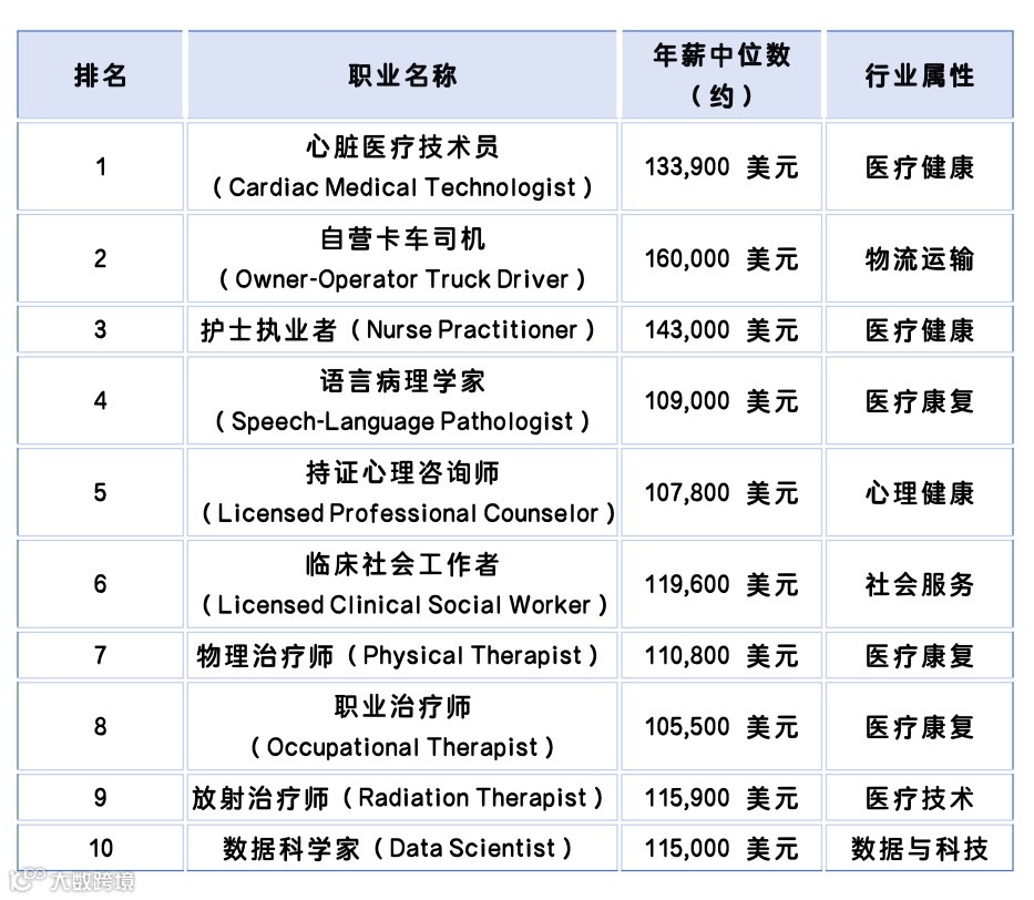 2026年全美前景职业Top 10