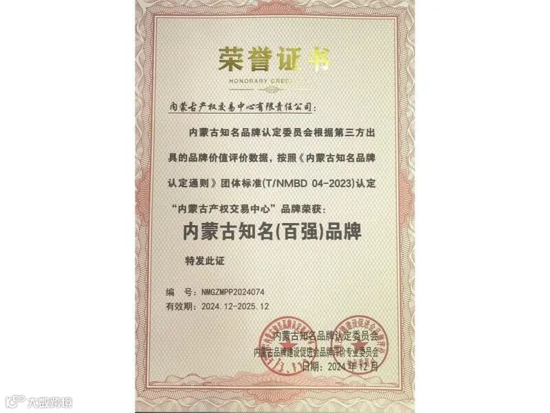 2025年,交易集团(产权交易中心)荣获国家及自治区级奖项15项,获评产权交易行业AAA级最高信用评级、全国产权行业诚实守信机构;获得“2024年度新质生产力研究实践新质奖先进单位”荣誉;所属农村产权交易平台获评自治区“三八文明岗”;数据交易中心获“数据要素×”大赛内蒙古分赛突出贡献奖,“蒙字号”产权交易品牌已成为全国要素市场的靓丽名片。2025年,“内蒙古产权交易中心”品牌蝉联“内蒙古知名(百强)品牌”,排名从第74位跃升至第68位,品牌价值从7.41亿元增至10.72亿元,增幅44.66%。