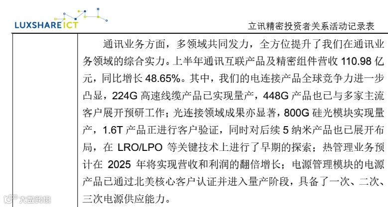 数据来源:立讯精密2025年8月27日投资者关系活动记录表