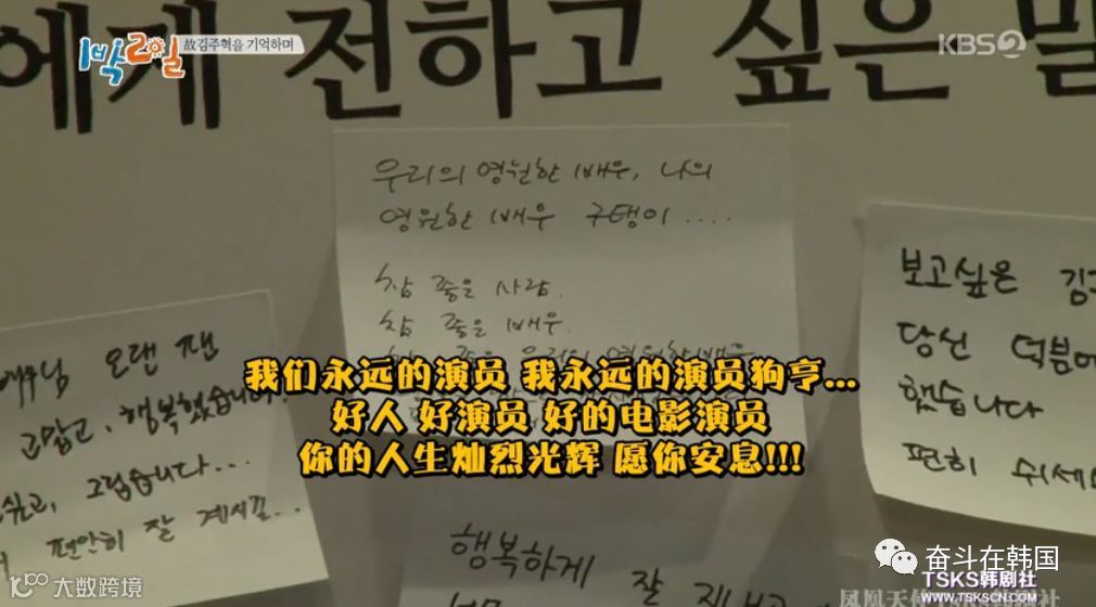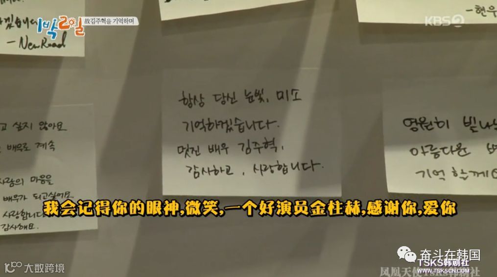 追悼活动现场收集了大量观众写给金柱赫的话语,表达不舍与敬意。