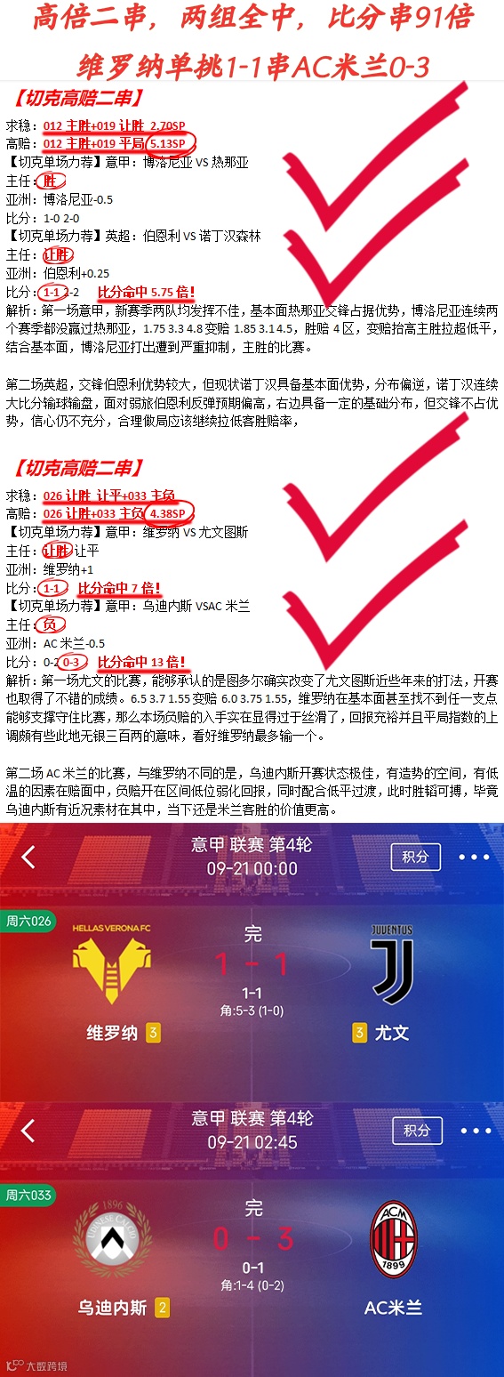 串关这种方式,重在坚持,贵在坚持,且需要保持良好的心态!在比赛越来越难的当今足坛,敢稳定、风雨无阻,并且能够做到持续接受大家监督推串子的博主是少之又少,多数博主为了保证红单率,就只推单场,那么无疑还是把风险和选择题推给了大家,切克是不能认同的!如果您选择信任切克,切克必不会辜负您的信任!