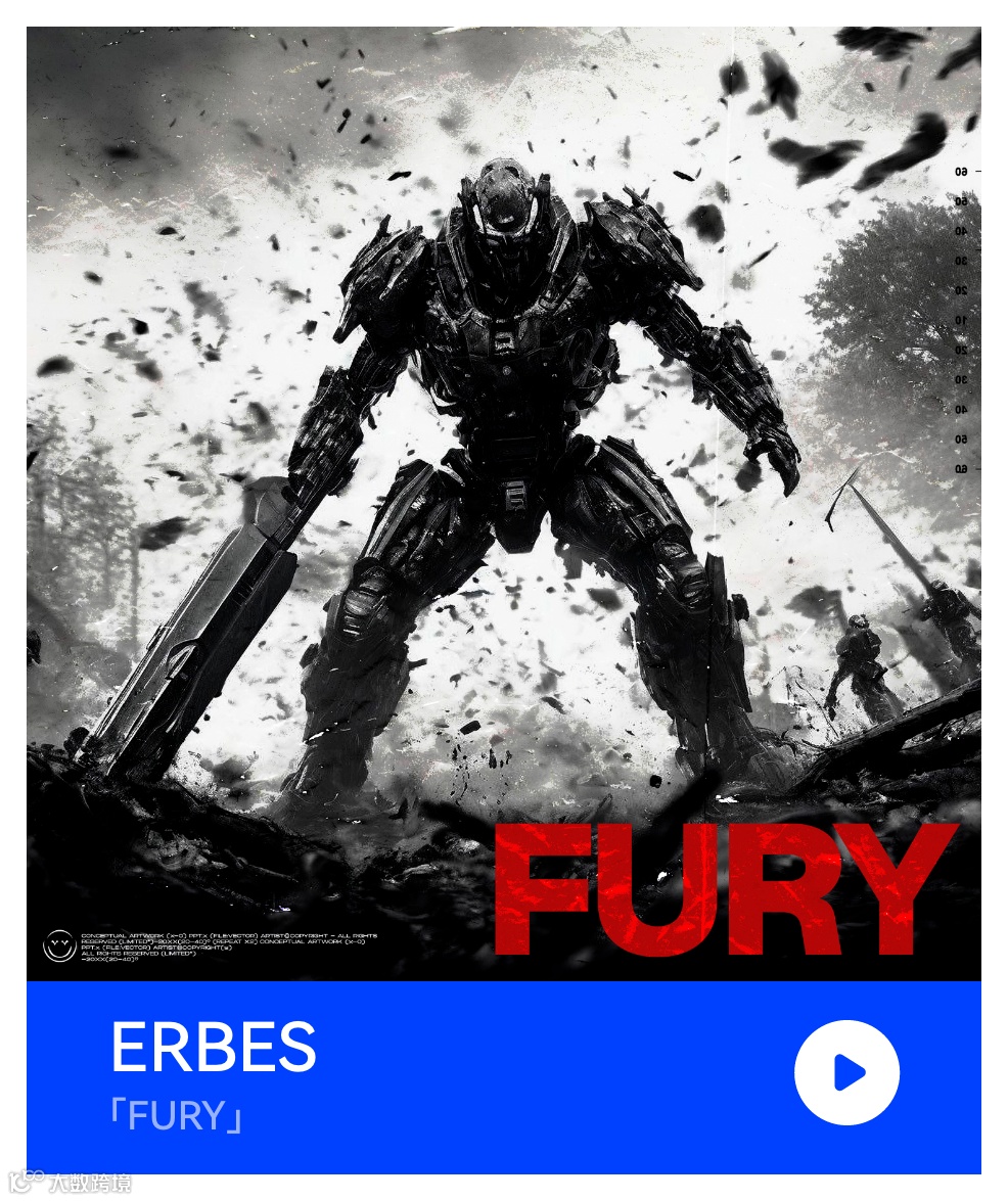 歌曲 《FURY》 展现了 ERBES 音乐中冷峻的一面。这首曲子注入了侵略性的合成器音色和紧迫感十足的低音节奏。音乐整体呈现出一种工业质感的破坏感,在精确的节奏控制下层层推进,表现出电子乐在动态调节上的张力。