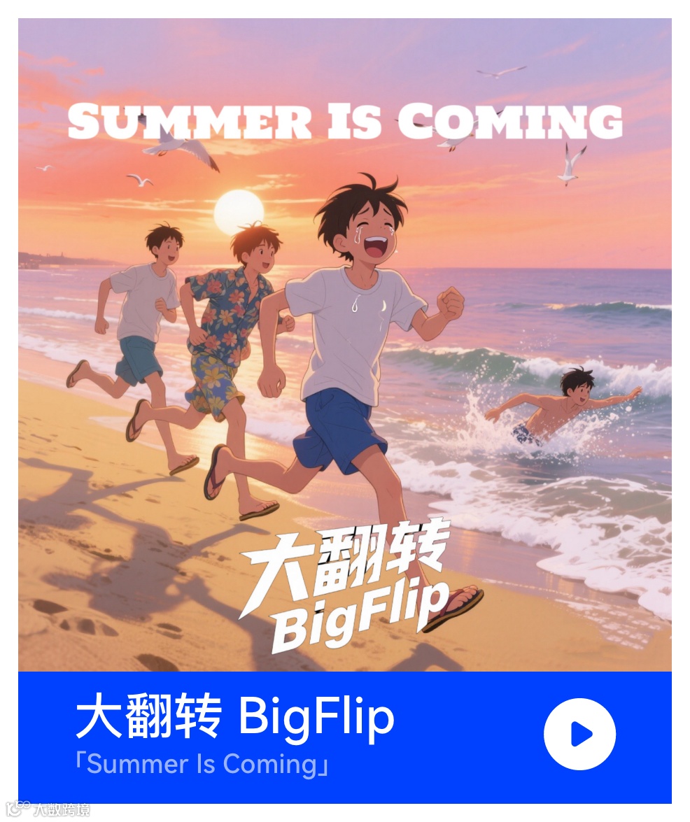 大翻转 BigFlip 是活跃于华语音乐圈的新锐创作者,作品常混合流行元素与摇滚精神,声音中具备一种率直的情绪表达与青春气息。他并不追求刻意华丽的制作,而更重视旋律和声线的融合,让音乐听起来亲切、富有感染力,同时带着一种向上、突破的态度。